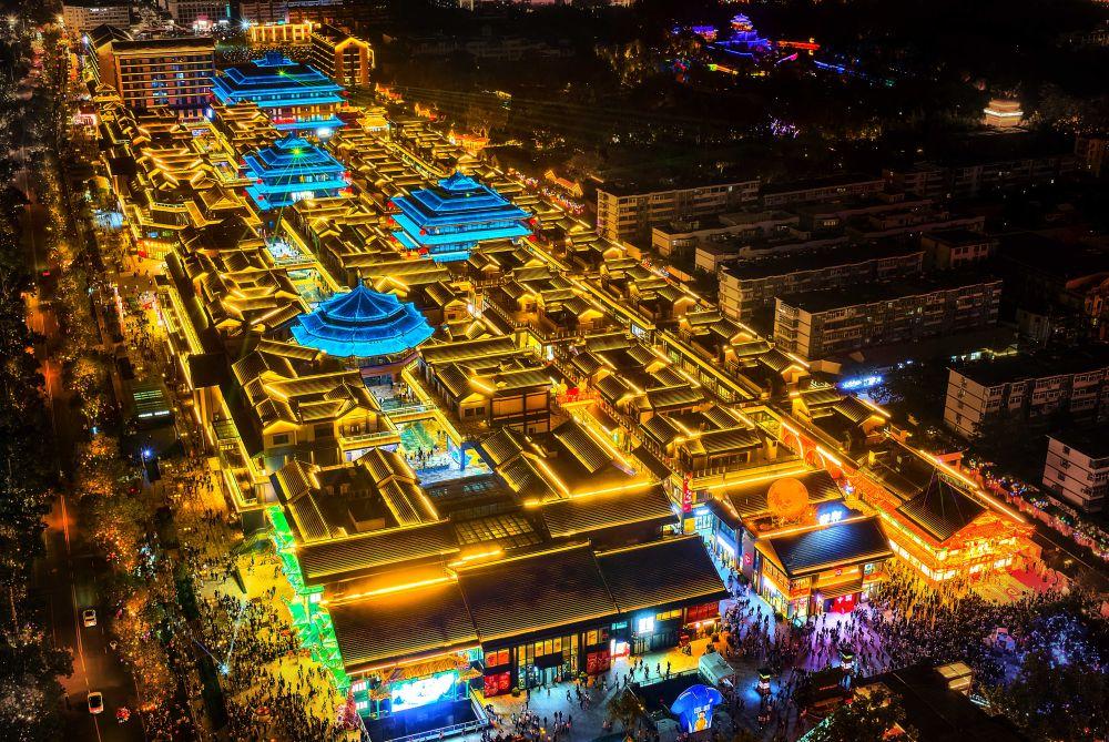 夜色下的邯郸道历史文化街区流光溢彩。新华社记者 赵鸿宇 摄