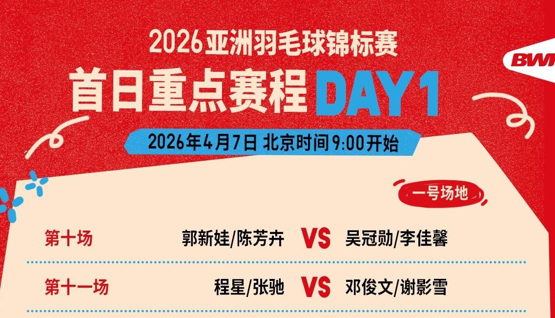 2026年亚洲羽毛球锦标赛今日开打 首日赛程公布