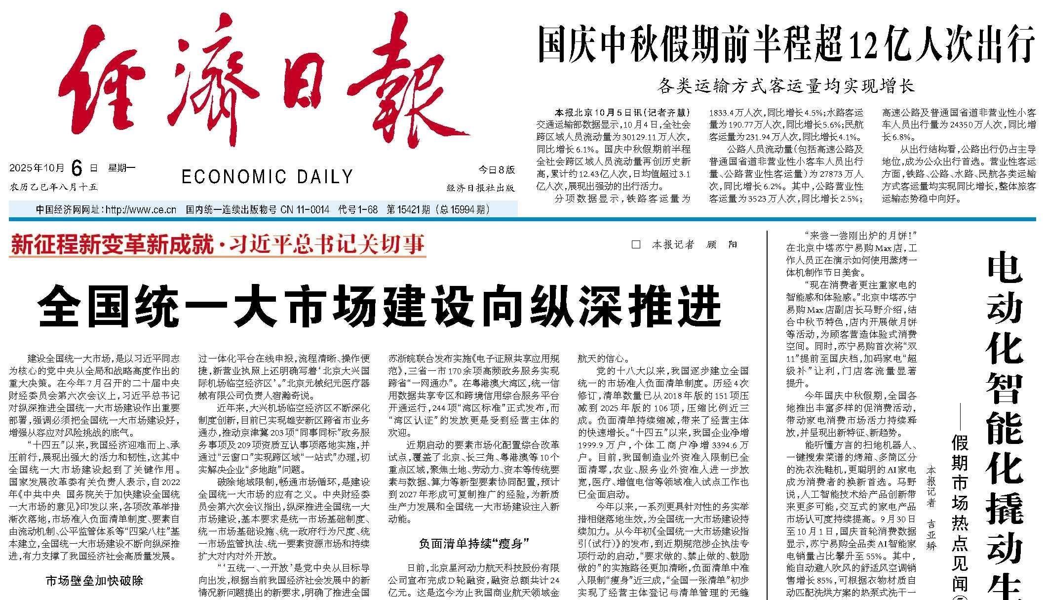 再创历史新高!国庆中秋假期前半程交通出行人数约12.43亿人次
