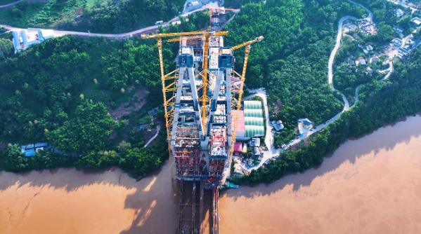 世界最高双联主塔 渝万高铁石沱长江大桥双主塔封顶
