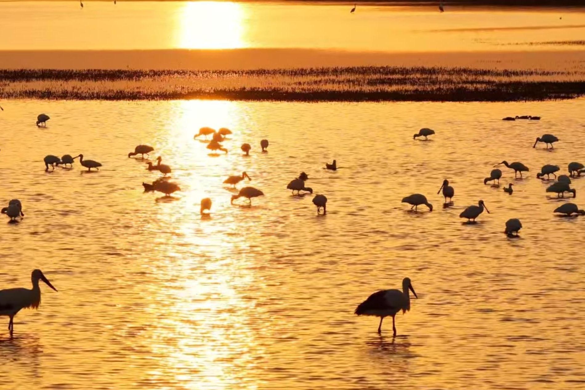 河北沧州:万鸟翔集洒金辉 秋日湿地展生机