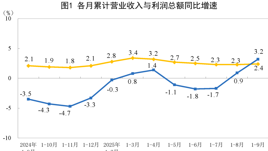 国家统计局:前9个月全国规模以上工业企业利润增长3.2%